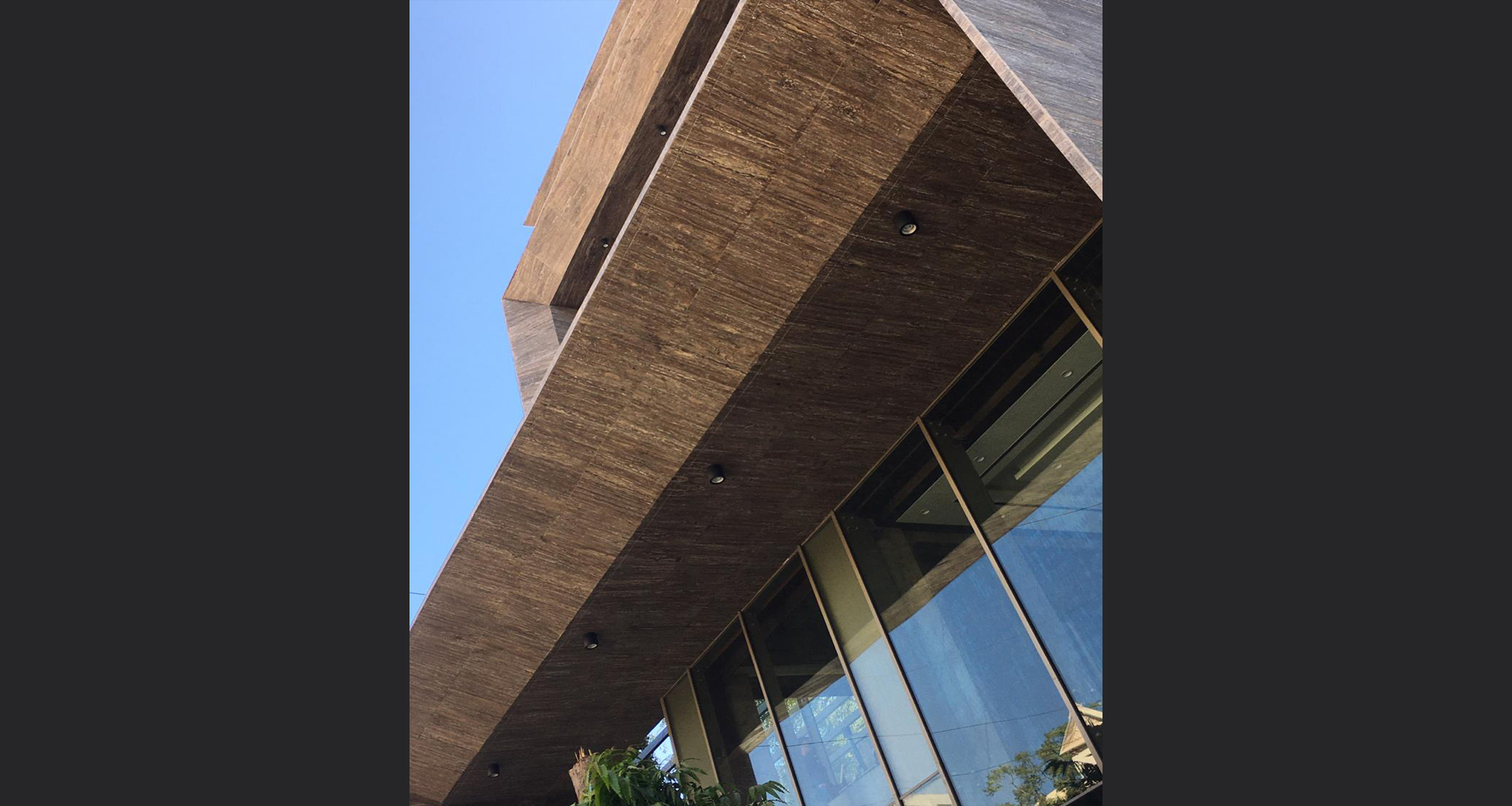The travertine is clad with Aluminium Sub-frame System and Stainless Steel Anchors.