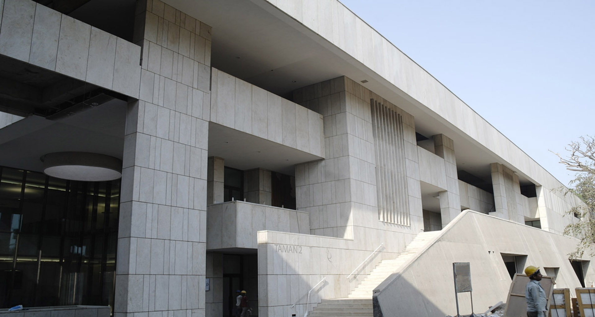 One of the most challanging projects executed by Aum Enterprises. 6 cm thick granite slabs we installed with specially designed body anchor system. The internal public areas are clad in 30 mm stone. The highlight of the project were the 100 mm thick granite finns and sandstone screens. The project also involved extinsive shop drawings and system designing. Blind Hung stones were installed with undercut system with Stainless Steel brackets.